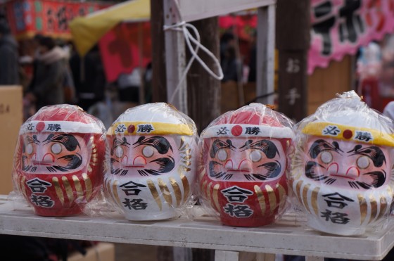 In Japan, on February, there is very important examination for students to enter University. To pass the exam, students or their family of the students will get Gokaku-Daruma doll (picture above). By the way, can you tell all eye are blank? Do you know why? As soon as you buy it, you put a black dot into one blank with wishing your fortune. Then when your dream comes true, you fill another blank eye. That’s the way how Daruma doll works.