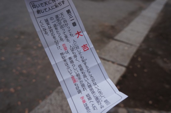 今年最初のおみくじの結果は、、、、大吉!イェイ!!