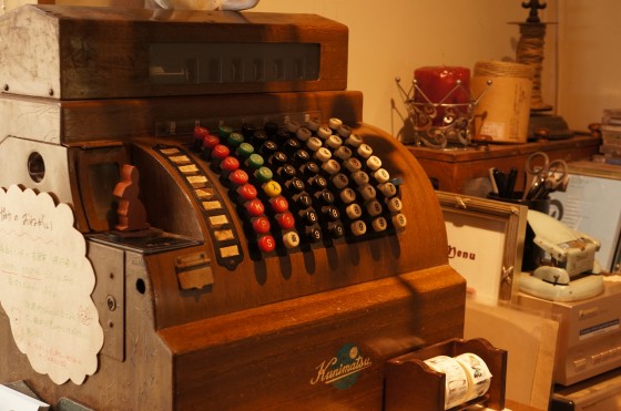 たまげたのは、このレジです。今も使っているし、ちゃんとレシートも出るんです!!押してみたかった!