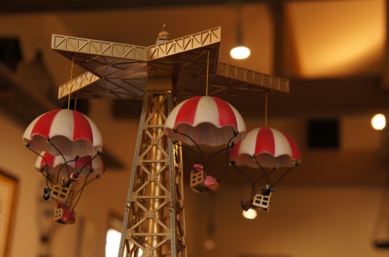 ミニチュア可愛いすぎ!!これ、名前なんだっけ?すべて回転系の乗り物がディスプレイされています。