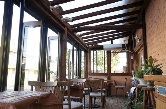 パティオも開放的で畑の中ならではですね。ここでは、ホットドッグやチリドッグのような 軽食も楽しむ事ができます。この後ろに少し見える建物は、最近オープンした豚コース料理のお店です。そちらも農場直営のレストランです。