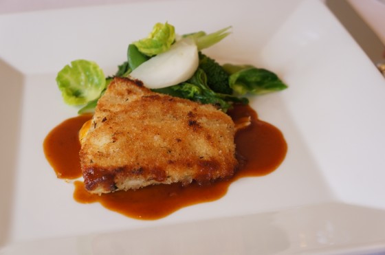 本日のお魚料理は、スズキのポワレ、香草パン粉焼き。
