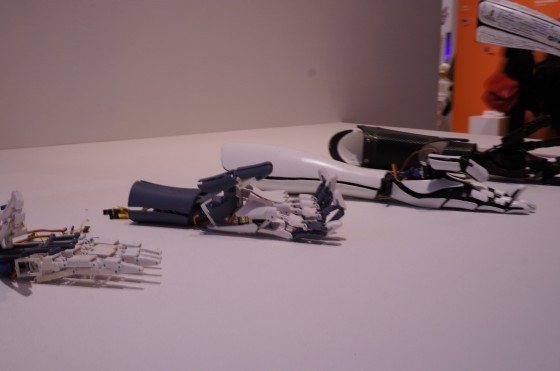 アートは、人の既成概念や思考を変化させるために存在するものだと思っていましたが、時代はとっくにそんな場所を通り越して、実用の時代に突入しています。「Handiii」は、近藤玄大さん、山浦博志さん、小西哲哉さんによる作品。筋電義手というもの。筋電義手とは、手を失われた方が残された腕の筋肉の電気信号を介し直感的に操作できる義手のことです。3Dプリンタで作った模型は40000円で販売もしています。詳しくは、exiiiのウェブサイトへ。→http://exiii.jp/index.html