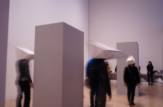 デモ体験に行列ができていた作品「3RD」 は、鳥を模した“ヘルメット”を身に着けて空間の中を歩き回るものです。ヘルメットの中のモニターには、外部のカメラを通じて自らの姿を俯瞰してみることになるんだとか。もうアートを見る側が、じっとおとなしくしていられない時代がやってきました。