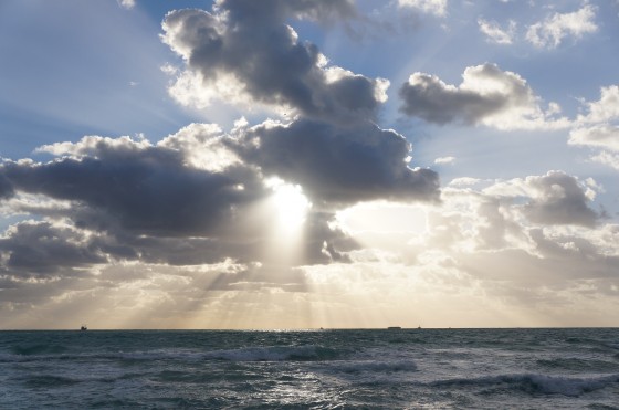 日の出直後の太陽が、一度は雲に隠れたものの、再び顔を出した時。雲の隙間から漏れる光の壮大さに圧巻!
