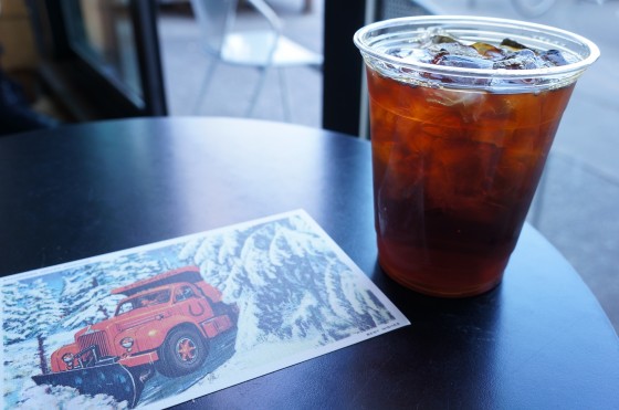 コールドプレスアイスコーヒーは、熱を加えずに水から時間をかけて落としているから限りなく酸味がなく、スタンプタウンのは苦味も少なく、水のようにさらさら飲めちゃいます。美味しいお水で落としているかどうかが一番重要ですね。ポストカードはお店に置いてありました。スタンプタウン・シアトル店のオリジナルカード??雪と昔の消防車らしき赤い車、ちょっと寒々としか感じからシアトルを感じます。
