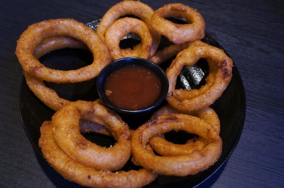 サイドメニューのオニオンリング。新しい油でカリッとあがってる!真ん中のはちょっと甘めな自家製スイートチリソース。全メニューボリュームあるせいか、客層は男性が多め。サイド頼んだら満腹になること確実です。食べてすぐに帰って行く人多いので、回転率も良さそう。行列できてても、わりとすぐ入れます。