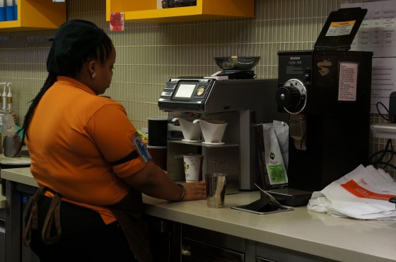 豆を選んでプアオーバーにすると、マーケットプライスになる上、豆+空港価格なので6ドル以上。プアオーバーはハンドではなく、全自動です。