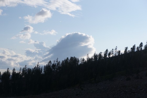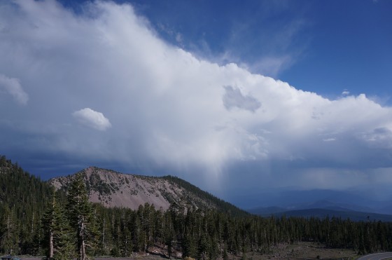 後ろの山は雲がかかっていて、落雷が響き渡っていました。シャスタの中腹は快晴なのに、、、不思議。たまにゴォーーーーーーッという凄い音をたてて風が吹き荒れます。